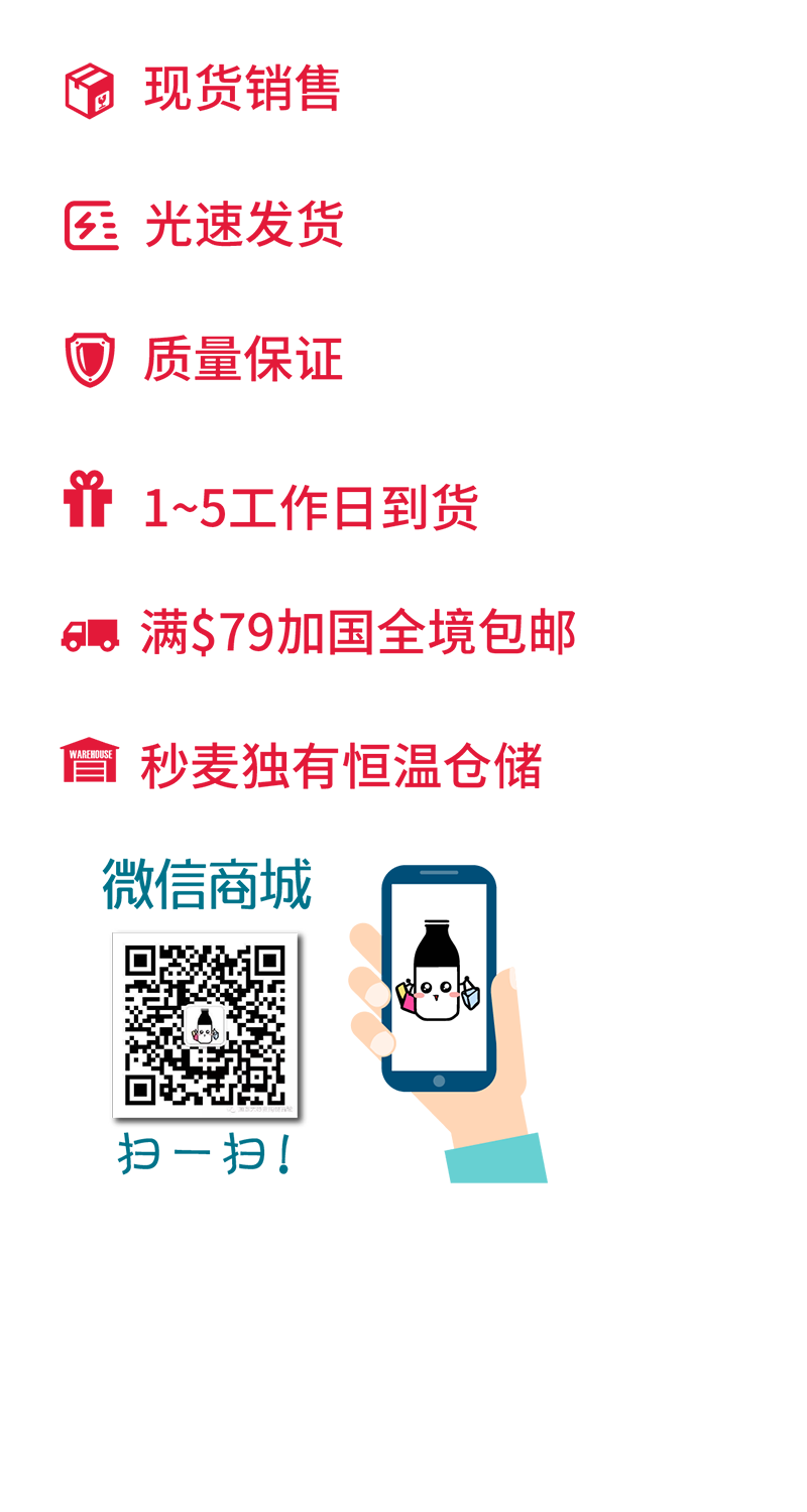 为了让生活在加国的朋友们不再等待漫长的淘宝转运和团购。Milkbuy与加拿大本地最资深的供货商拥有长期和深入的合作,减少中间环节,为顾客提供最优质的服务和惬意的线上生活方式。秒麦网专属快递服务提供华人圈中最低价的包邮政策和快速的邮寄服务。Canada Post 1-6个工作日到货Guarantee. 让顾客足不出户,购您所想。